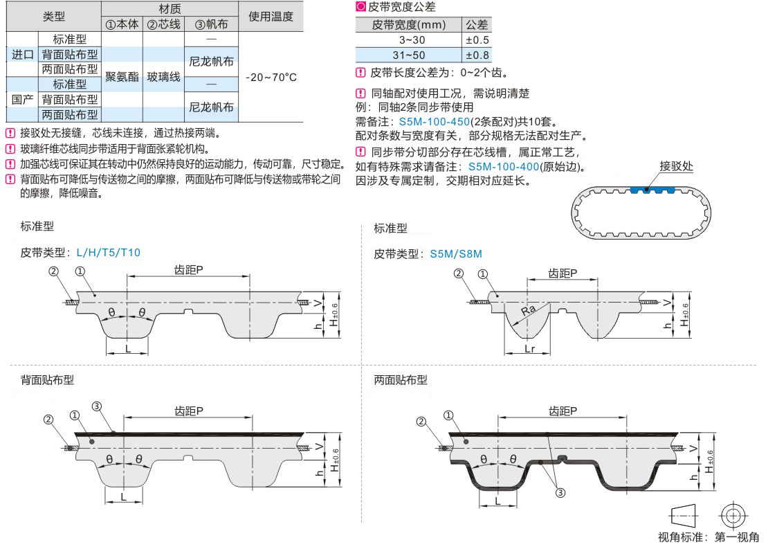 聚氨酯的優點和玻璃纖維的強度。這種帶的主體是由聚氨酯制成的,而內部則是由玻璃纖維芯線增強,使得這種帶在保持接駁型同步帶易于安裝和維護的優點的同時,還具有更高的強度和耐用性。