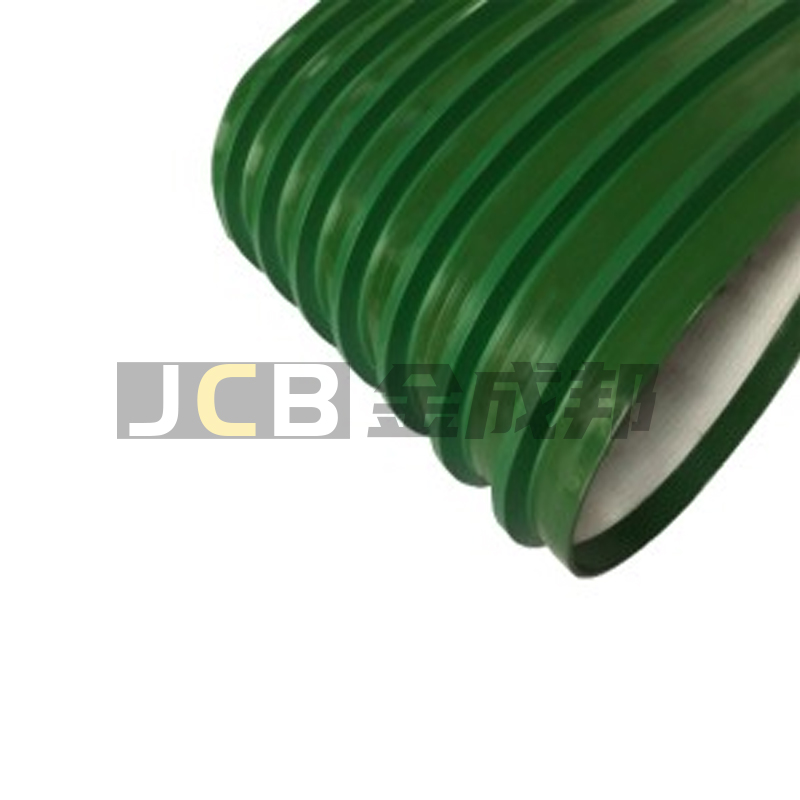 環(huán)形擋條輸送帶是一種特殊設(shè)計的輸送帶,它在表面上添加了環(huán)形的擋條。這種設(shè)計可以有效地防止物料滑動或側(cè)漏,提高輸送過程中的穩(wěn)定性和效率。環(huán)形擋條輸送帶常用于處理傾斜物料、陡峭斜面或需要防止物料滑動的場景。
